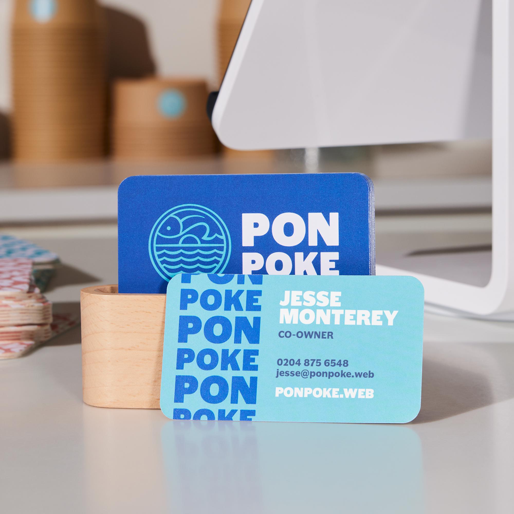 Cartões de visita, pósteres, lonas publicitárias e muito mais com design a condizer